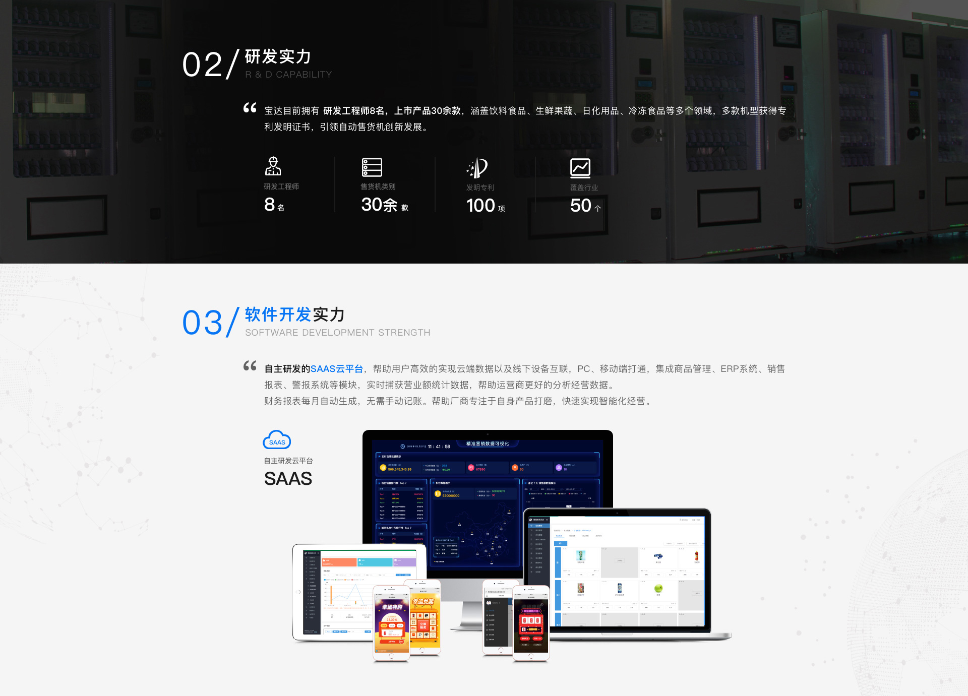 ? ? ? ?寶達(dá)智能科技公司是一家擁有自助售貨終端系列產(chǎn)品的研發(fā)、制造與銷售的高新技術(shù)企業(yè)。18年來(lái)在互聯(lián)網(wǎng)、云計(jì)算機(jī)領(lǐng)域積累豐富的成功經(jīng)驗(yàn)。公司圍繞電控、觸摸交互、移動(dòng)互聯(lián)、云計(jì)算機(jī)等核心技術(shù),塑造成為國(guó)內(nèi)技術(shù)領(lǐng)先型企業(yè)。依托智能交互式平臺(tái)的領(lǐng)先技術(shù)在智能自動(dòng)售貨機(jī)上的完美展現(xiàn),為廣大用戶提供高品質(zhì)的設(shè)備和全方位的服務(wù)。寶達(dá)智能自動(dòng)售貨機(jī)具有良好的企業(yè)形象和商業(yè)信譽(yù),擁有國(guó)內(nèi)先進(jìn)技術(shù)的應(yīng)用體系及自動(dòng)售貨機(jī)制造的能力,應(yīng)對(duì)市場(chǎng)需求快速反應(yīng),滿足客戶的多方位需求,與客戶一起,打造更大的市場(chǎng)價(jià)值。