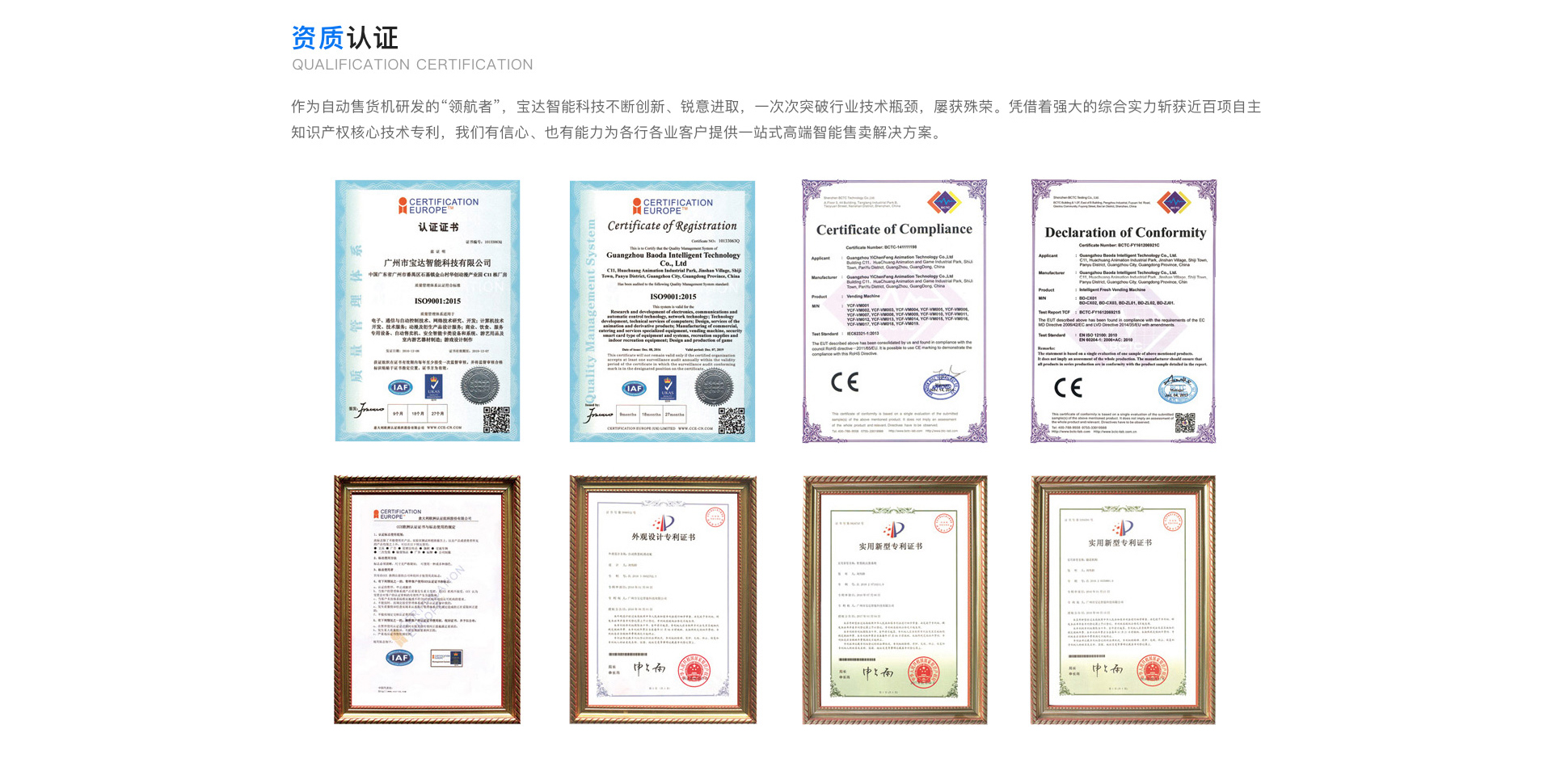 ? ? ? ?公司遵循“用戶第一,顧客至上,互利雙贏”的經(jīng)營理念,寶達公司擁有完善的運營模式,產(chǎn)品品牌在市場上身受消費者的青睞。寶達智能售貨機在中東、東南亞、南美、非洲、歐洲等市場取得驕人的成績,同時成為多家大型企業(yè)的定點供應(yīng)商。企業(yè)已通過ISO標準及CE認證,寶達科技秉承以“市場需求為核心,以結(jié)果為導(dǎo)向”,為廣大商戶服務(wù)。