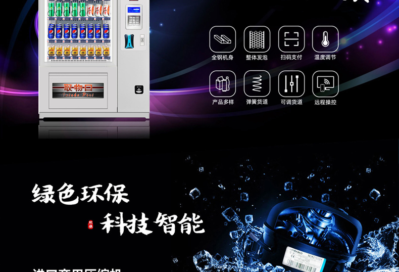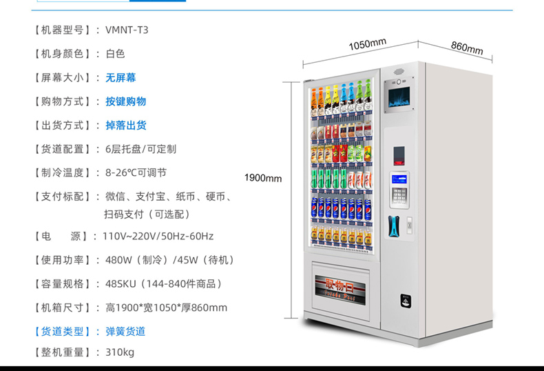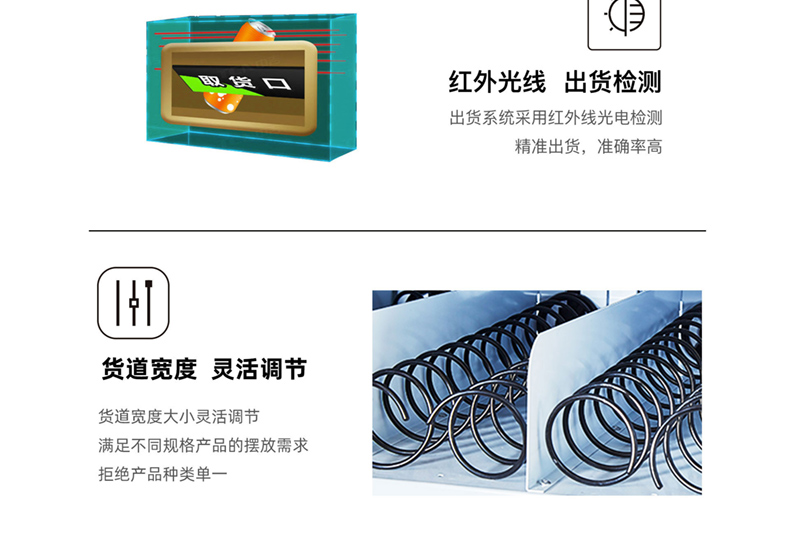 售賣(mài)類(lèi)型:可售賣(mài)瓶裝罐裝飲料、香煙、食品等