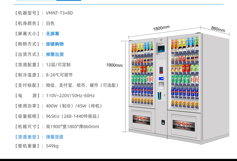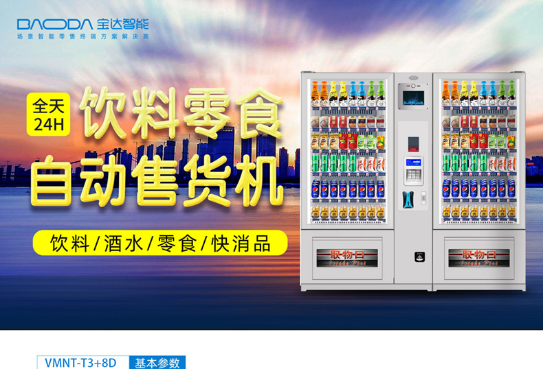 售賣類型:可售賣瓶裝罐裝飲料、香煙、食品等