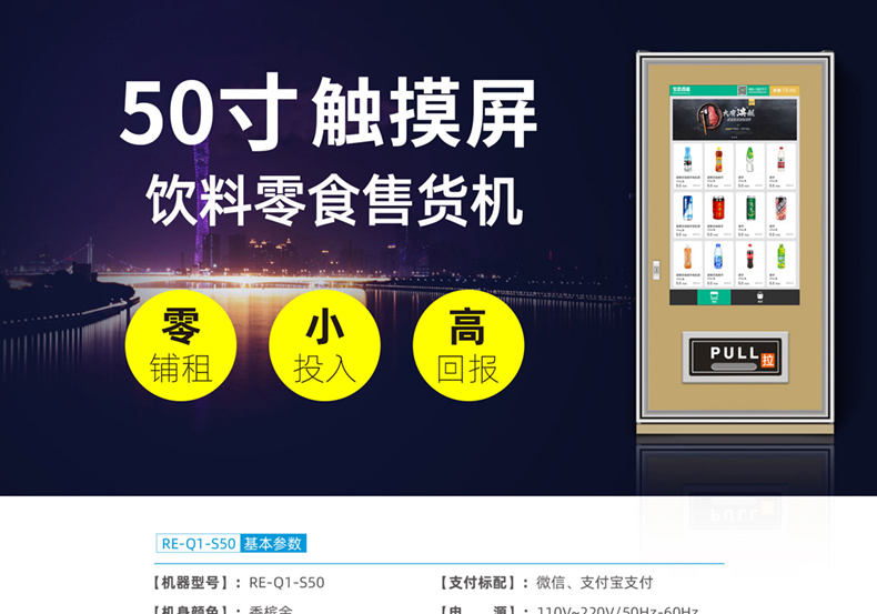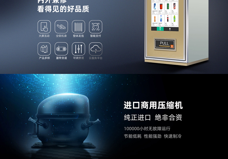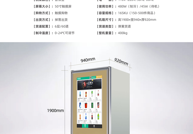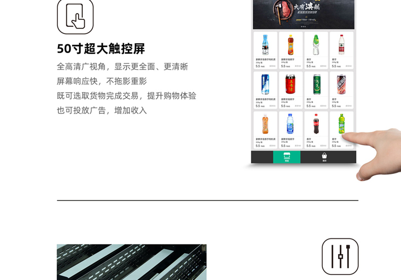 訂購(gòu)標(biāo)配:(0°c~24°c )制冷機(jī)組+智能防盜門+安卓工控主板+50液晶觸摸屏+微信支付及支付寶功能
