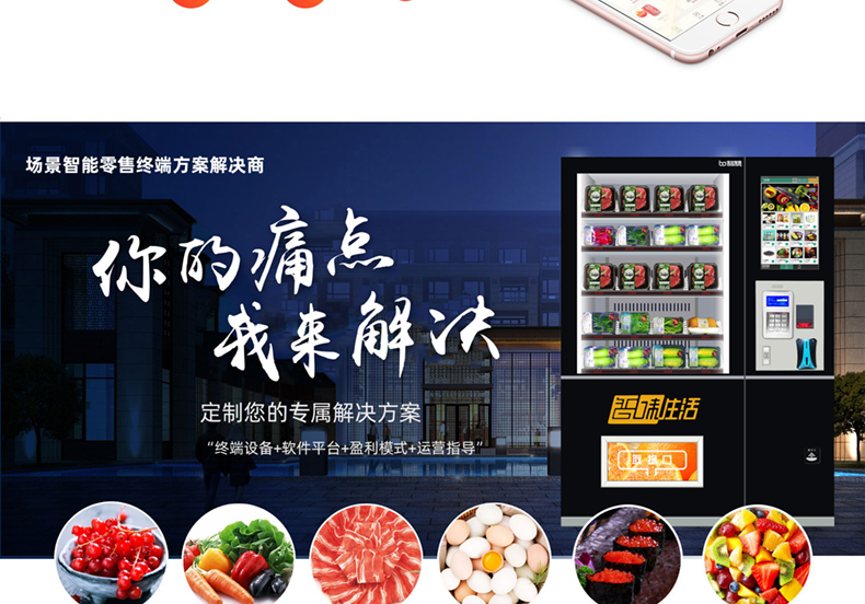 售賣類型:可售飲料 食品 果蔬 盒飯 糧油 肉類 海鮮等生鮮冷鏈商品
