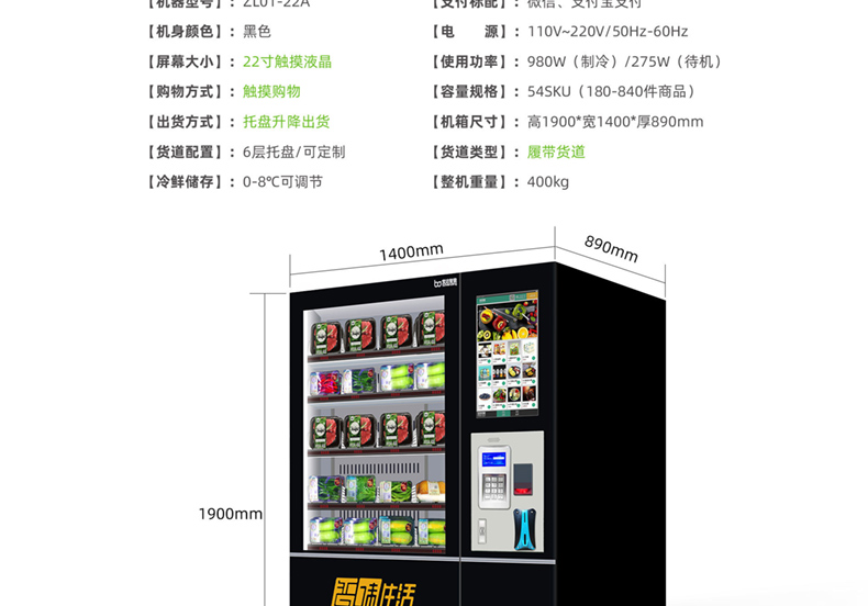 訂購(gòu)標(biāo)配:(0-8°c)制冷機(jī)組+數(shù)碼電子標(biāo)簽+智能防盜門+智能電動(dòng)取貨門+22寸液晶屏+觸摸屏+TEI45主機(jī)+微信及支付寶支付