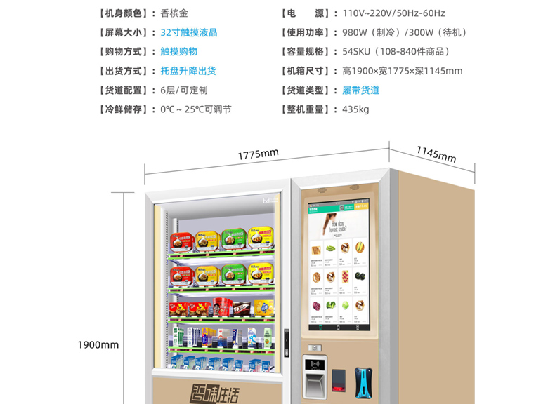 訂購標配:(0°c~-25°c )制冷機組+數碼電子標簽+智能防盜門+智能電動取貨門+32寸液晶屏+觸摸屏+TEI45主機+升降梯接貨+微信及支付寶支付