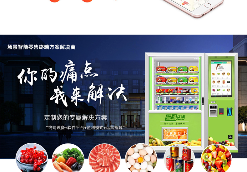 售賣類型:可售飲料 食品 果蔬 盒飯 糧油 肉類 海鮮等生鮮冷鏈商品
