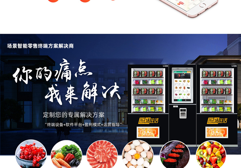售賣(mài)類(lèi)型:可售飲料 食品 果蔬 盒飯 糧油 肉類(lèi) 海鮮等生鮮冷鏈商品