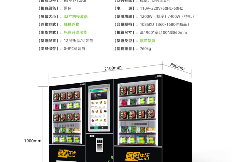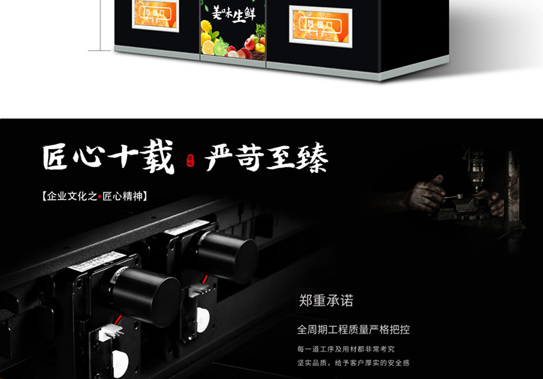 訂購(gòu)標(biāo)配:(0°c~8°c )制冷機(jī)組+數(shù)碼電子標(biāo)簽+智能防盜門(mén)+智能電動(dòng)取貨門(mén)+22寸液晶屏+觸摸屏+TEI45主機(jī)+微信及支付寶支付