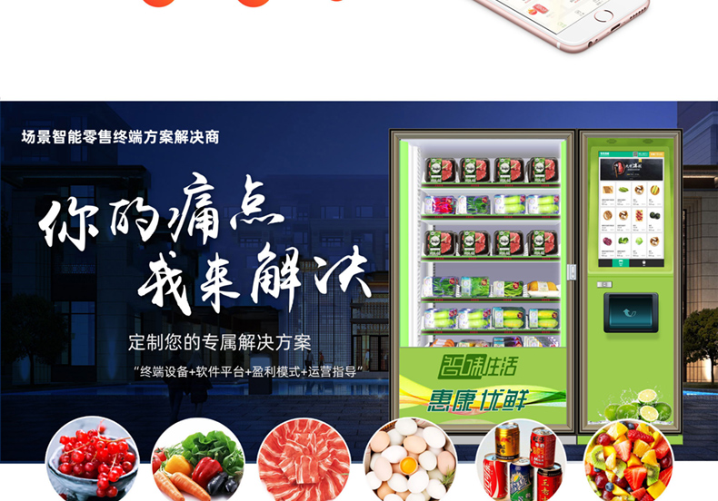 售賣類型:可售飲料 食品 果蔬 盒飯 糧油 肉類 海鮮等生鮮冷鏈商品