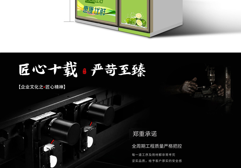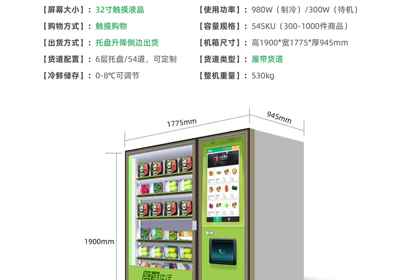 訂購標(biāo)配:(-18°c~8°c )制冷機(jī)組+數(shù)碼電子標(biāo)簽+智能防盜門+智能電動(dòng)取貨門+32寸液晶屏+觸摸屏+TEI45主機(jī)+升降梯接貨+微信及支付寶支付